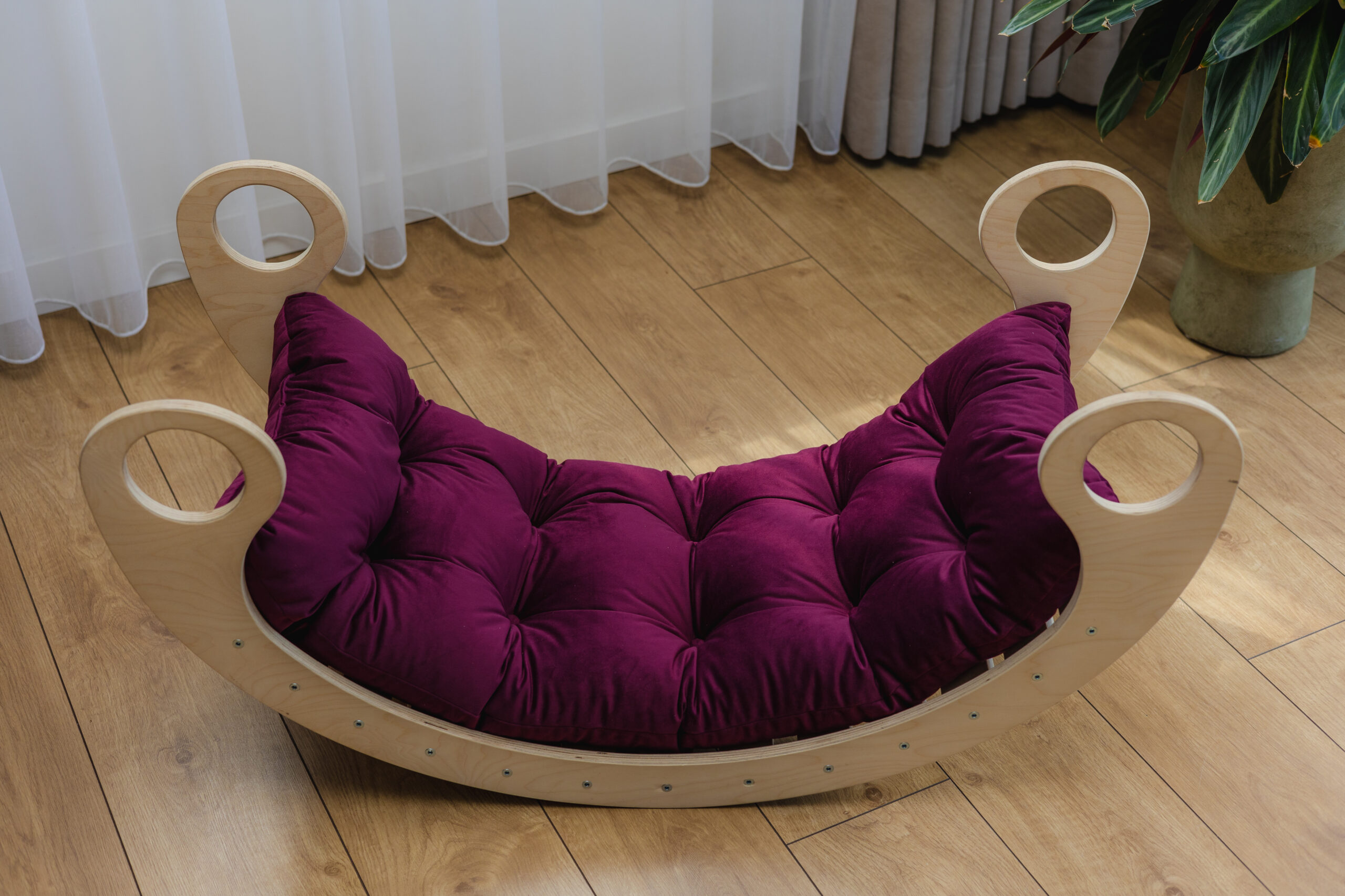 Poduszka na bujak Montessori dziecięca 100×45 welur śliwka
